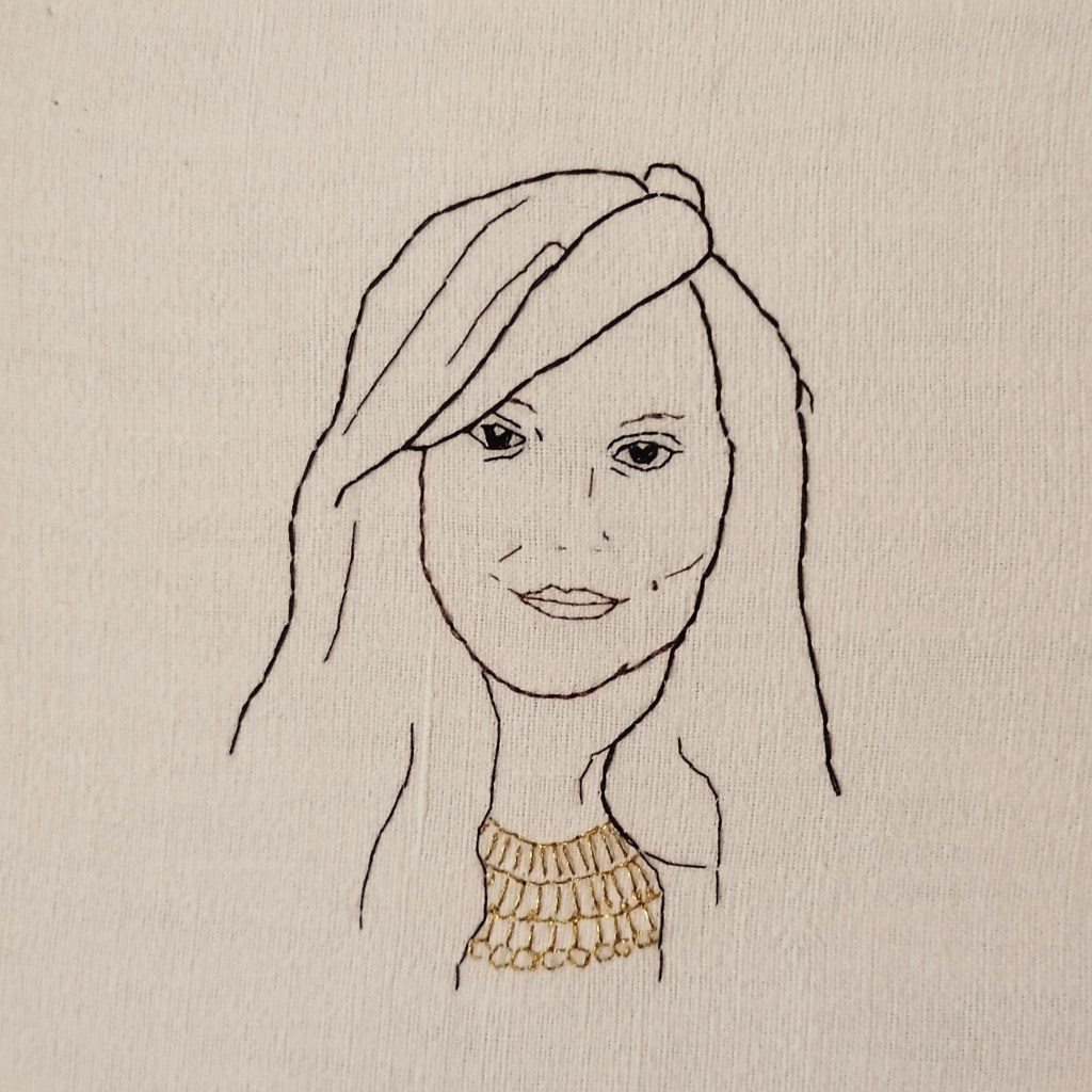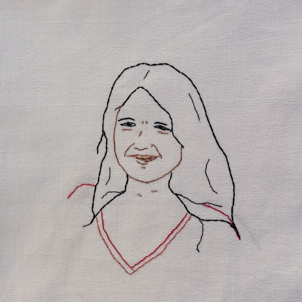 Celles du dessus est une série de portraits brodés de femmes travaillant dans le secteur culturel. Les spectacles ne pourraient pas se faire sans elles. J’ai demandé à chacune de me donner une citation d’une autrice pour accompagner leur broderie.